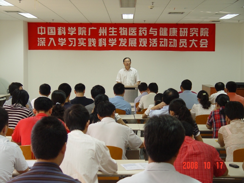 10月17日,我院召開深入學習實踐科學發(fā)展觀活動動員大會。大會由副院長朱詠峰主持,黨委書記、副院長黃建沖做動員報告,我院全體PI、院管理部門全體干部職工、各黨支部書記、支委近70人參加了會議。