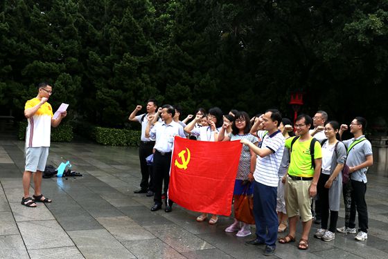 當(dāng)天上午,天空下著毛毛細雨,廣州生物院行政黨支部全體黨員佩戴黨徽,來到黃花崗七十二烈士陵園,向烈士紀念碑敬獻了鮮花,在黨旗下重溫了入黨誓詞,瞻仰了烈士紀念碑,向革命先烈表達無限崇敬與哀思之情。