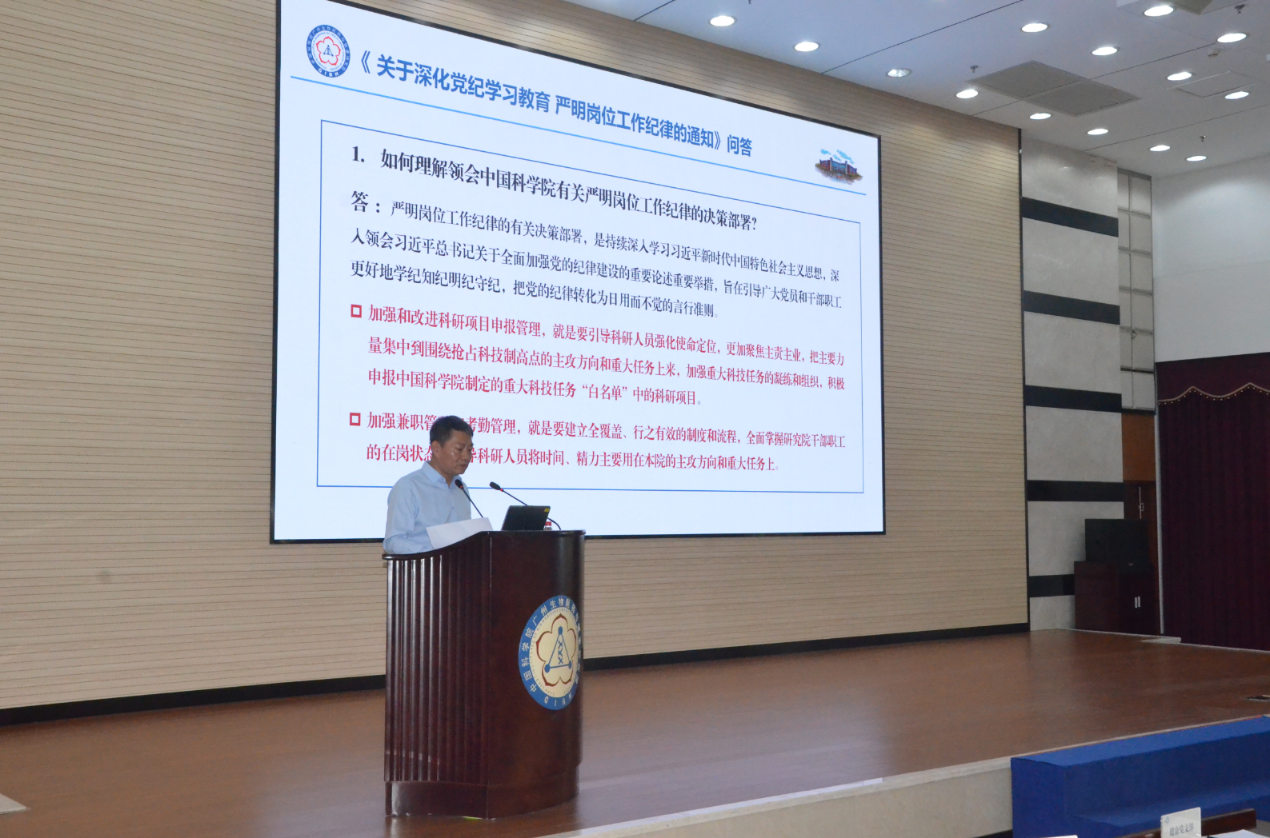 會(huì)上,張鴻翔詳細(xì)傳達(dá)并解讀了中國(guó)科學(xué)院《關(guān)于深化黨紀(jì)學(xué)習(xí)教育嚴(yán)明崗位工作紀(jì)律通知》和《關(guān)于推進(jìn)黨紀(jì)學(xué)習(xí)教育常態(tài)化長(zhǎng)效化的通知》的新精神和新要求,并對(duì)院里關(guān)于開(kāi)展“深化黨紀(jì)學(xué)習(xí)教育嚴(yán)明崗位工作紀(jì)律”專(zhuān)項(xiàng)工作的決策部署、具體要求和研究院的落實(shí)情況進(jìn)行了全面深入的介紹和闡述。