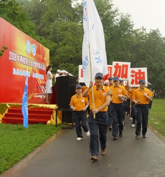 6月3日上午,華南植物園彩旗飄揚,人潮涌動,在雄壯的國歌聲中,中科院舉辦的迎奧運全民健身展示活動拉開了序幕。當我院260名職工,在院領導的帶領下健步走過主席臺時,會場響起了熱烈的掌聲。在微微細雨中,我院全體職工完成了近半個小時的越野跑,整齊的隊形、響亮的口號展示了我院職工良好的精神面貌和體育精神,贏得了參加活動的有關領導和兄弟單位的好評。