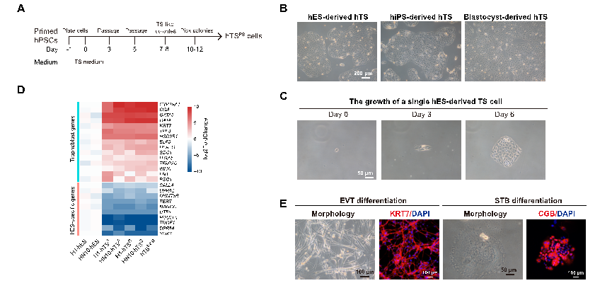 利用primed(始發(fā)態(tài))人多能干細(xì)胞高效獲得人滋養(yǎng)層干細(xì)胞,為研究胎盤發(fā)育及相關(guān)疾病提供了很好的模型(2021,Science Advances)。