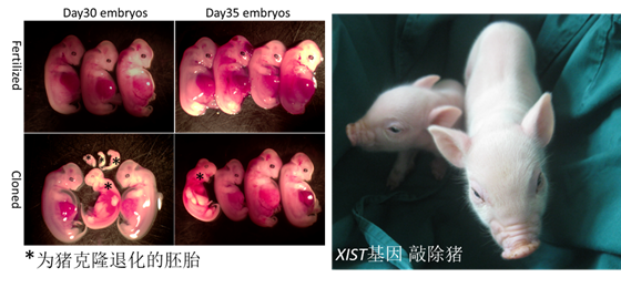 豬克隆退化的胚胎和XIST基因敲除豬