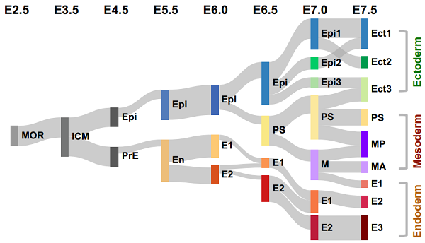 7. Pijuan-Sala, B., Griffiths, J.A., Guibentif, C., Hiscock, T.W., Jawaid, W., Calero-Nieto, F.J., Mulas, C., Ibarra-Soria, X., Tyser, R.C.V., Ho, D.L.L., et al. (2019). A single-cell molecular map of mouse gastrulation and early organogenesis. Nature.