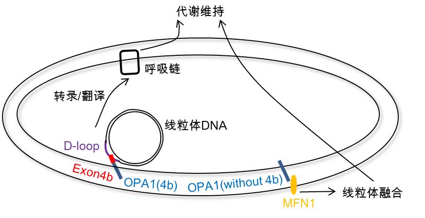 劉興國(guó)組發(fā)現(xiàn)OPA1的外顯子之一4b不依賴(lài)于線粒體之間的融合,直接調(diào)控線粒體呼吸而恢復(fù)自我能量供給。機(jī)制研究表明,OPA1外顯子4b調(diào)控線粒體DNA類(lèi)核的結(jié)構(gòu),特異結(jié)合線粒體DNA的D-loop區(qū)來(lái)調(diào)控其轉(zhuǎn)錄,修復(fù)電子傳遞鏈,最終恢復(fù)線粒體呼吸功能。更重要的是,含有OPA1-Exon4b的剪接體蛋白在肝癌細(xì)胞中的表達(dá)特異下調(diào),導(dǎo)致腫瘤糖代謝Warburg效應(yīng)中線粒體能量供給下降。