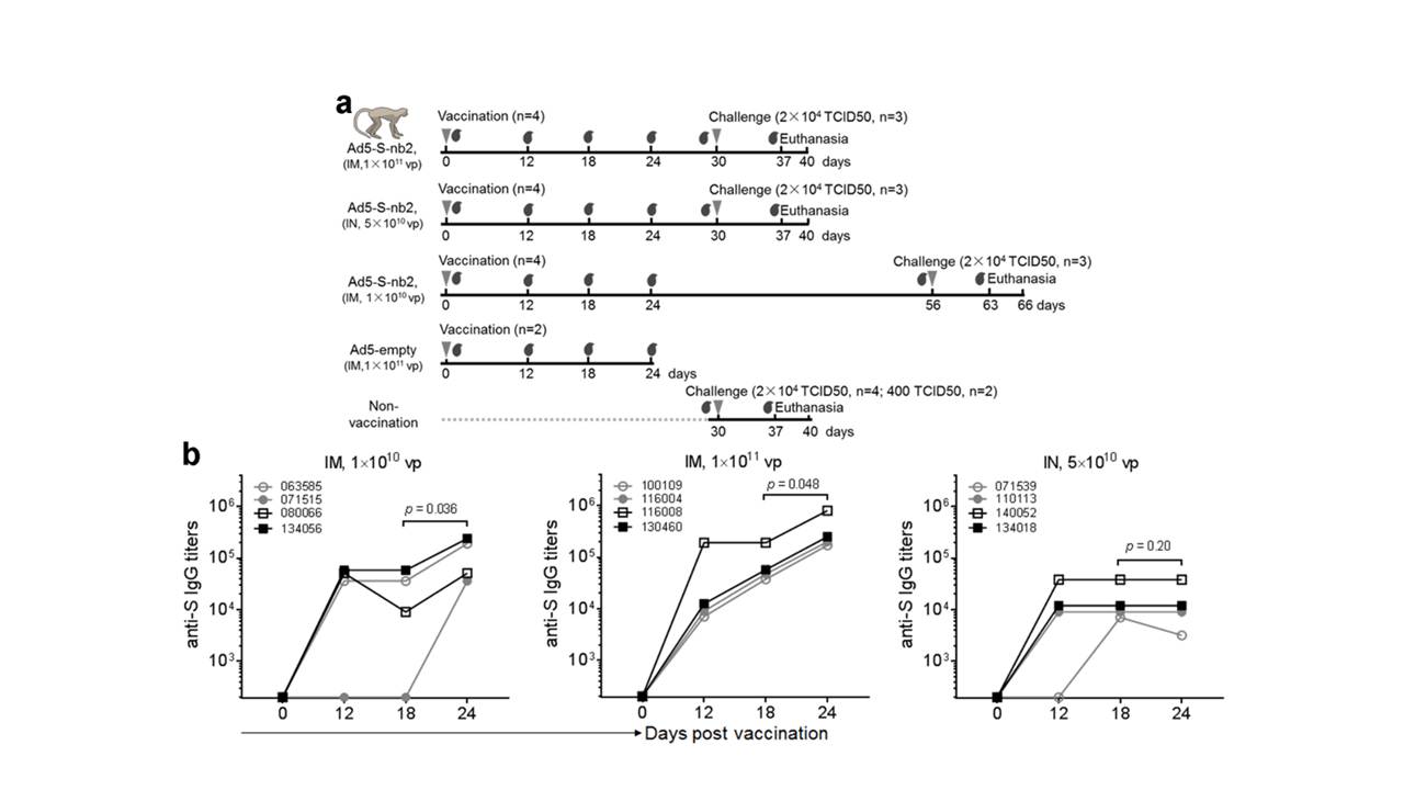 該腺病毒實驗疫苗可在獼猴體內誘導顯著的針對新冠病毒S蛋白的抗體反應