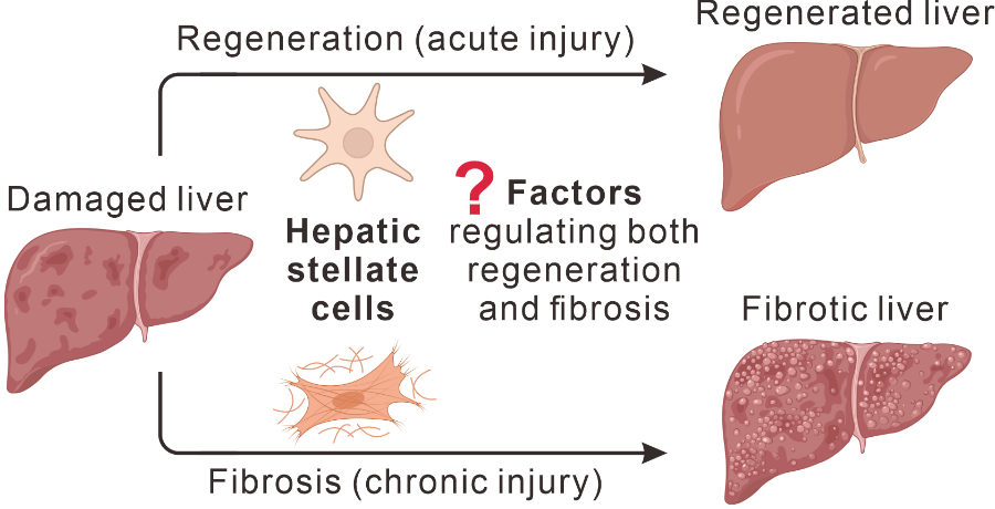 圖1?肝星狀細胞(hepatic stellate cells)在肝損傷后的再生和纖維化中發(fā)揮重要作用,但在肝星狀細胞中同時調(diào)控兩個過程的靶基因并不清楚。