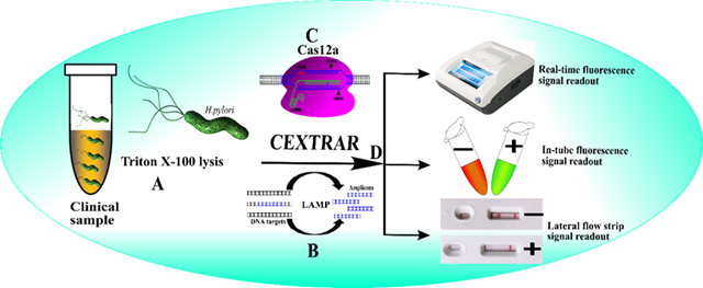 用于幽門(mén)螺旋桿菌實(shí)時(shí)熒光和比色監(jiān)測(cè)的CEXTRAR平臺(tái)工作示意圖