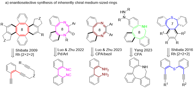 圖1. 不對稱合成八元、七元環(huán)固有手性骨架進(jìn)展