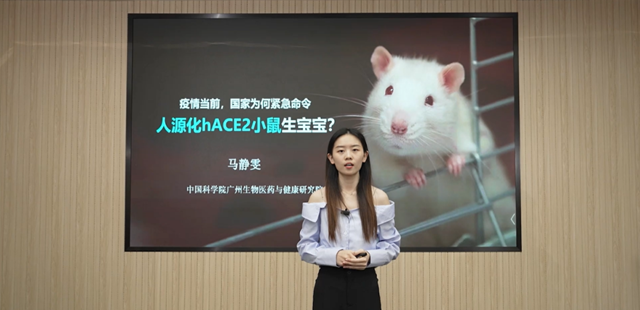 彭浩將干細(xì)胞比做會(huì)七十二變的孫悟空,以通俗易懂的語(yǔ)言帶觀眾走進(jìn)干細(xì)胞的世界,了解人類由受精卵發(fā)育而來(lái)、傷口愈合和緩解衰老的秘密。自新冠疫情流行以來(lái),人們談“病毒”色變,高函函的講解科普了病毒的特征,病毒何以致病,倡導(dǎo)大家對(duì)病毒保持理性的態(tài)度。馬靜雯關(guān)注疫情當(dāng)前國(guó)家緊急命令人源化小鼠生寶寶的現(xiàn)象,講述作為動(dòng)物模型的小鼠對(duì)生物醫(yī)藥研發(fā)的重要作用。在人類經(jīng)濟(jì)活動(dòng)和自然環(huán)境的影響下,使許多動(dòng)物瀕臨滅絕,甚至滅亡,林丹妮科普了如何從生物學(xué)的手段走出復(fù)活滅絕生物的第一步。4名選手發(fā)揮自身專業(yè)優(yōu)勢(shì),將生物醫(yī)藥與健康領(lǐng)域的專業(yè)知識(shí)通過(guò)生動(dòng)的語(yǔ)言、有趣的圖片向觀眾普及,贏得了評(píng)委老師的認(rèn)可。