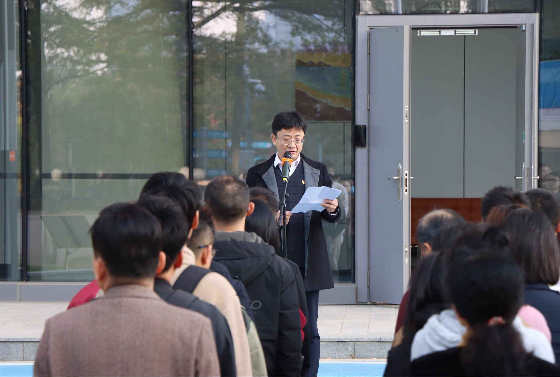 2025年1月3日上午,廣州健康院在生物島園區(qū)舉行新年升國旗儀式。研究院領(lǐng)導(dǎo)班子、細(xì)胞譜系設(shè)施建設(shè)指揮部成員、已進(jìn)駐譜系設(shè)施研發(fā)樓的研究團(tuán)隊(duì)、譜系設(shè)施建設(shè)工程辦公室、工程技術(shù)中心等110多名師生員工參加了升國旗儀式。本次升旗儀式同時(shí)也是譜系設(shè)施建設(shè)支部、譜系中心支部、裝備中心支部、數(shù)字中心支部和管理支部五個(gè)支部的聯(lián)合主題黨日。