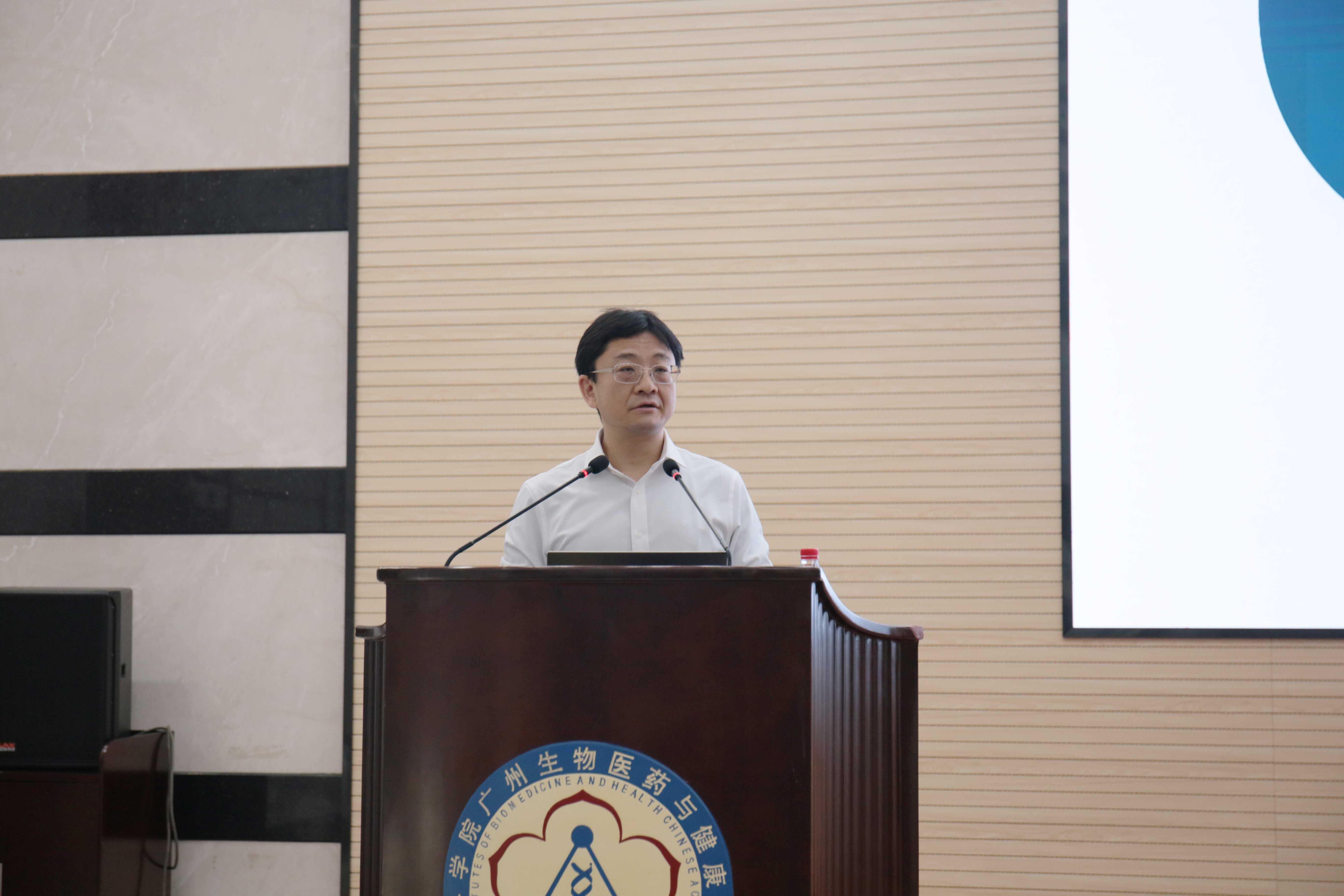 黃從利首先介紹了考核評(píng)議的要求和相關(guān)注意事項(xiàng)。隨后,孫飛副院長(zhǎng)(主持工作)代表廣州健康院領(lǐng)導(dǎo)班子作年度工作總結(jié)報(bào)告。孫飛系統(tǒng)回顧了研究院在2025年圍繞國家戰(zhàn)略科技力量使命,在黨建、科研攻關(guān)、平臺(tái)建設(shè)、人才引育及成果轉(zhuǎn)化等方面取得的系列突破性進(jìn)展,展現(xiàn)出蓬勃的發(fā)展態(tài)勢(shì)與強(qiáng)勁的創(chuàng)新動(dòng)能。
