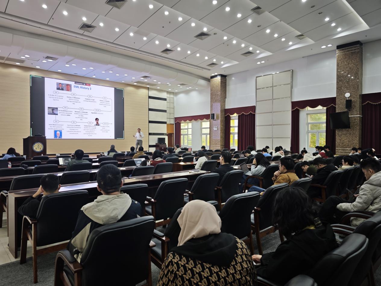 張?jiān)菏恳浴?/span>Evolutionary Machine Learning: 70 Years of Progress》為題做報(bào)告,他以時(shí)間為主線,系統(tǒng)梳理了進(jìn)化機(jī)器學(xué)習(xí)從1950年代圖靈提出模式識(shí)別理念至今70年的發(fā)展脈絡(luò),清晰呈現(xiàn)了從規(guī)則邏輯、樹基模型到神經(jīng)網(wǎng)絡(luò)融合的三大關(guān)鍵階段,詳解了GP(基因編程)系列模型迭代及進(jìn)化計(jì)算與深度學(xué)習(xí)的融合突破。張?jiān)菏拷Y(jié)合團(tuán)隊(duì)研究成果,重點(diǎn)介紹了人工智能技術(shù)在計(jì)算機(jī)視覺、醫(yī)療微小病灶檢測(cè)、新冠醫(yī)療資源調(diào)度、華為供應(yīng)鏈優(yōu)化等領(lǐng)域的跨界應(yīng)用,同時(shí)客觀分析了當(dāng)前理論深度不足、計(jì)算量較大、泛化能力待提升等挑戰(zhàn)。他強(qiáng)調(diào),未來(lái)技術(shù)發(fā)展應(yīng)聚焦“真實(shí)世界影響”,以解決實(shí)際問題為導(dǎo)向,在經(jīng)濟(jì)效益、環(huán)境效益與人類健康領(lǐng)域?qū)崿F(xiàn)更大貢獻(xiàn)。