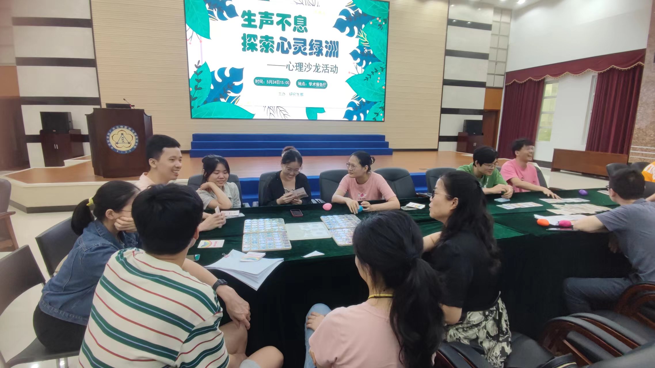 5月24日,在學(xué)生心理健康日來(lái)臨之際,廣州健康院研究生部邀請(qǐng)廣州市心理咨詢(xún)師協(xié)會(huì)來(lái)院開(kāi)展了以生聲不息,探索心靈綠洲為主題的心理沙龍活動(dòng),在院學(xué)生、博士后和職工參加活動(dòng)。