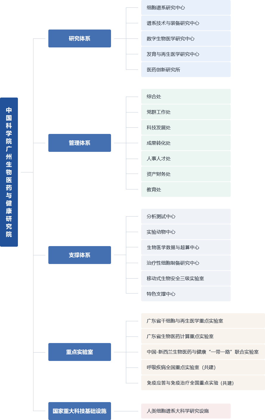 中國(guó)科學(xué)院廣州生物醫(yī)藥與健康研究院(簡(jiǎn)稱(chēng)“廣州健康院”)于2003年7月由中國(guó)科學(xué)院、廣東省人民政府、廣州市人民政府三方簽約共建,于2006年3月獲得中編辦批復(fù)正式成立。 廣州健康院的定位是:面向人民健康,聚焦生命健康領(lǐng)域前沿重大科學(xué)問(wèn)題和重要疾病機(jī)理,以建成國(guó)際一流的生物醫(yī)藥與健康領(lǐng)域新型研發(fā)機(jī)構(gòu)和創(chuàng)新人才培養(yǎng)高地為目標(biāo),提供保障人類(lèi)健康和疾病防控的原創(chuàng)性基礎(chǔ)理論、突破性前沿技術(shù)與系統(tǒng)性解決方案為使命,優(yōu)化科技成果快速轉(zhuǎn)化的機(jī)制與途徑,滿(mǎn)足國(guó)家戰(zhàn)略需求和區(qū)域經(jīng)濟(jì)社會(huì)發(fā)展,促進(jìn)生物醫(yī)藥產(chǎn)業(yè)發(fā)展,發(fā)揮國(guó)家戰(zhàn)略科技力量的核心作用。