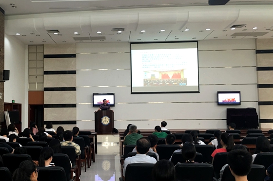 華南師范大學胡國勝教授就新修訂的黨章、憲法學習的時代背景、學習意義并結合時政熱點進行了輔導與講解。
