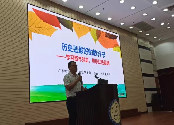 4月23日上午,中國科學(xué)院廣州生物醫(yī)藥與健康研究院黨史學(xué)習(xí)教育領(lǐng)導(dǎo)小組邀請廣東財經(jīng)大學(xué)馬克思主義學(xué)院孫曉暉教授作題為《歷史是最好的教科書——學(xué)習(xí)百年黨史,傳承紅色基因》專題黨課報告。廣州健康院黨委副書記、紀(jì)委書記侯紅明主持會議,廣州健康院全體黨員、團(tuán)員和科研人員等近180人參加了報告會。