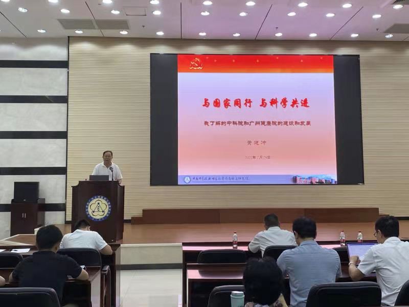 7月29日上午,中國科學(xué)院廣州生物醫(yī)藥與健康研究院黨史學(xué)習(xí)教育領(lǐng)導(dǎo)小組邀請研究院原黨委書記黃建沖同志作題為《與國家同行與科學(xué)共進》黨課報告。廣州健康院副院長李尹雄主持會議,廣州健康院全體黨員、處級以上領(lǐng)導(dǎo)干部和師生員工參加了報告會。