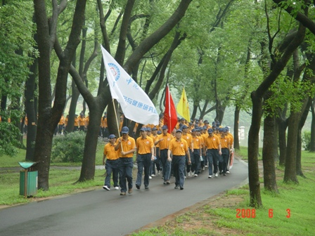6月3日上午,華南植物園彩旗飄揚,人潮涌動,在雄壯的國歌聲中,中科院舉辦的迎奧運全民健身展示活動拉開了序幕。當我院260名職工,在院領導的帶領下健步走過主席臺時,會場響起了熱烈的掌聲。在微微細雨中,我院全體職工完成了近半個小時的越野跑,整齊的隊形、響亮的口號展示了我院職工良好的精神面貌和體育精神,贏得了參加活動的有關領導和兄弟單位的好評。