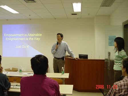 這次活動(dòng)邀請(qǐng)了院內(nèi)年輕有為的PI黃志偉博士(香港籍)和劉勁松博士,他們?cè)诿绹?guó)求學(xué)期間,成果卓著。黃志偉博士以“Empowerment through Enlightment”為題,結(jié)合自身經(jīng)歷,對(duì)科研思路,人生規(guī)劃,人格修養(yǎng)作出了精彩的闡述。本次活動(dòng)同學(xué)們踴躍參加,氣氛融洽,提問積極,與黃志偉博士和劉勁松博士進(jìn)行了熱烈的討論。陳凌院長(zhǎng)也在百忙之中參加活動(dòng)并發(fā)表了講話,勉勵(lì)大家刻苦學(xué)習(xí),為研究院發(fā)展做出貢獻(xiàn)。同學(xué)們會(huì)后紛紛表示參加論壇收獲良多,將以更大的熱情投入今后的學(xué)習(xí)生活當(dāng)中。