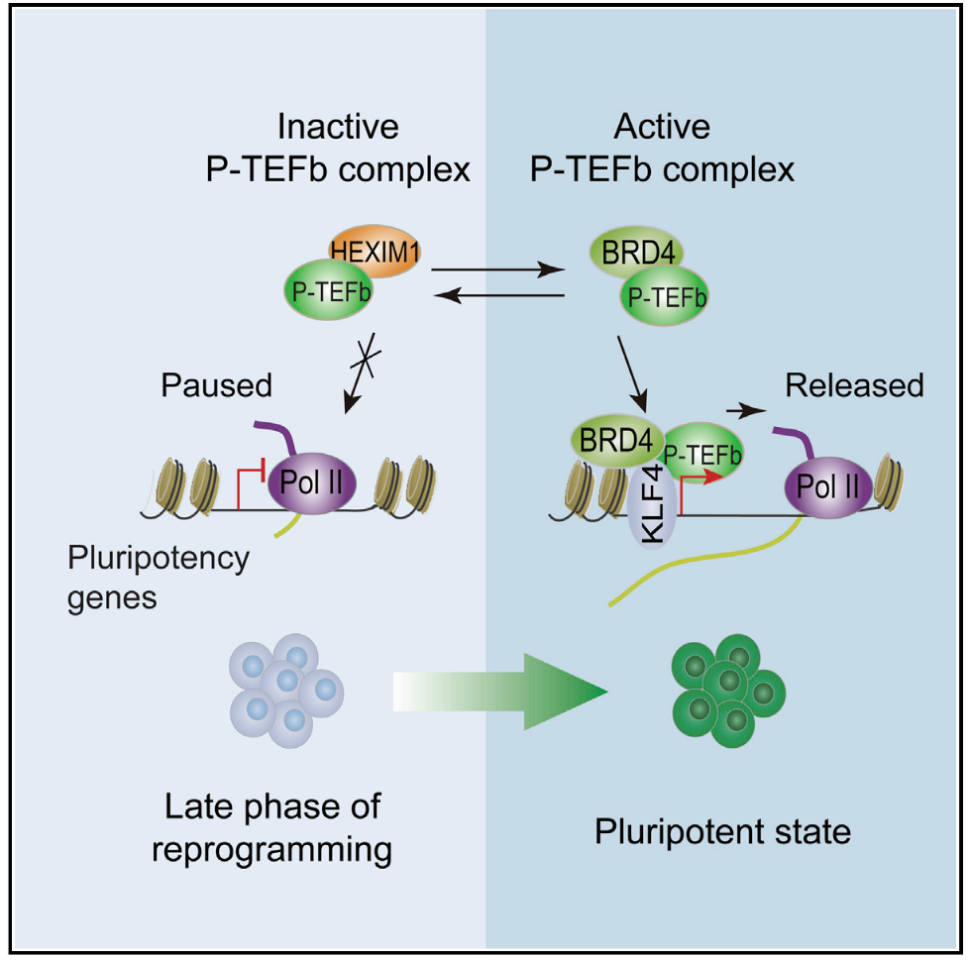 RNA聚合酶II從轉(zhuǎn)錄暫停狀態(tài)向高效轉(zhuǎn)錄延伸狀態(tài)的轉(zhuǎn)變是體細(xì)胞重編程的限速步驟(2014,Cell Stem Cell)。