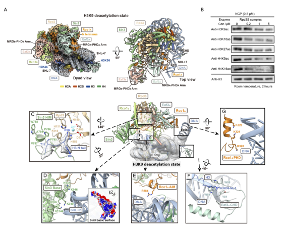 揭示組蛋白去乙酰化酶Rpd3S核小體去乙?;虳NA linker收緊的分子機制