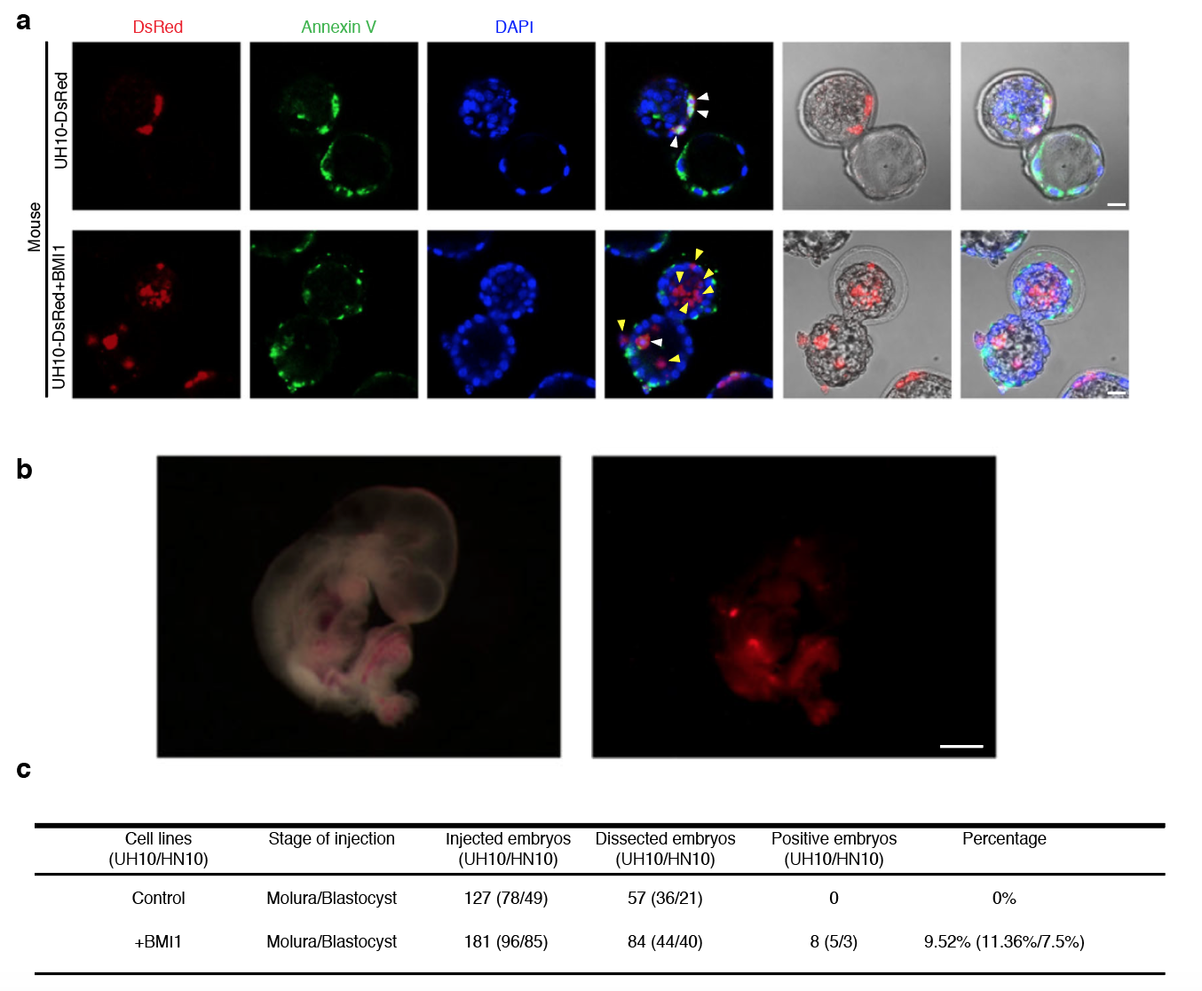 BMI1可以有效克服人多能干細(xì)胞在異種胚胎中發(fā)生的凋亡,進(jìn)而促進(jìn)異種嵌合。