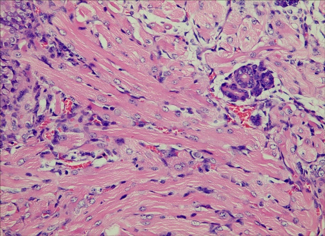 橫紋肌縱切面和單層立方上皮類膽管-中胚層