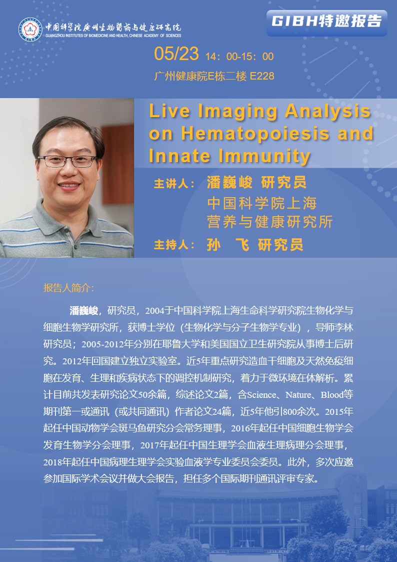 2025年5月23日特邀報告:Live Imaging Analysis on Hematopoiesis and Innate Immunity
