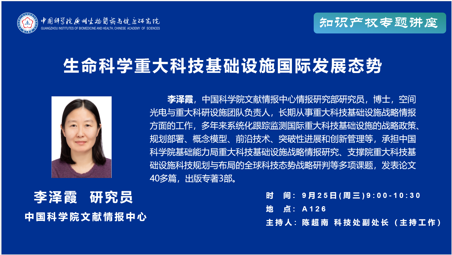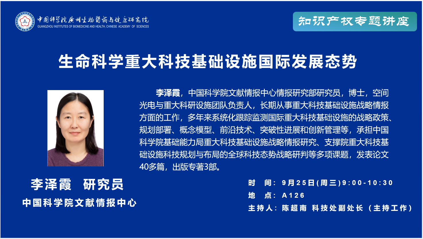 2024年9月25日知識(shí)產(chǎn)權(quán)專題講座:生命科學(xué)重大科技基礎(chǔ)設(shè)施國(guó)際發(fā)展態(tài)勢(shì);重大科技基礎(chǔ)設(shè)施知識(shí)產(chǎn)權(quán)相關(guān)問題探討