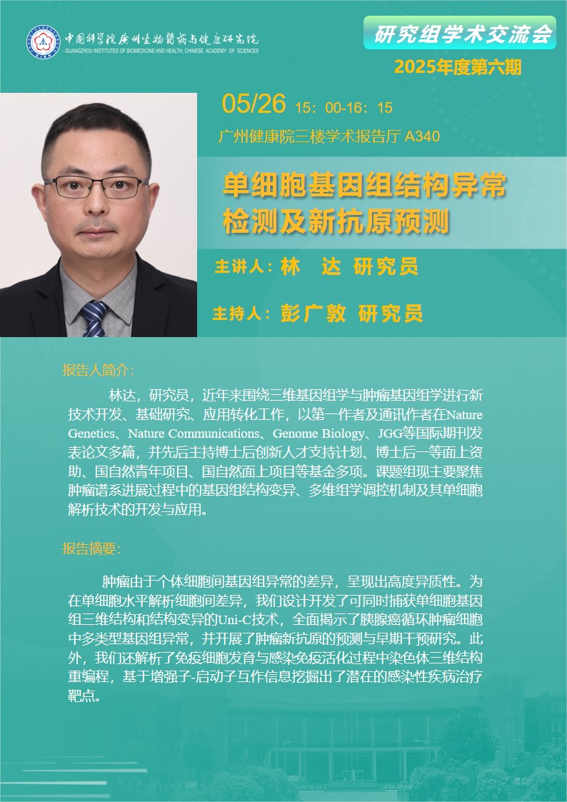 2025年5月26日研究組學術交流會(2025年度第六期):單細胞基因組結構異常檢測及新抗原預測