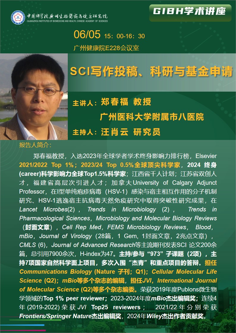 2025年6月5日學(xué)術(shù)講座:SCI寫作投稿、科研與基金申請