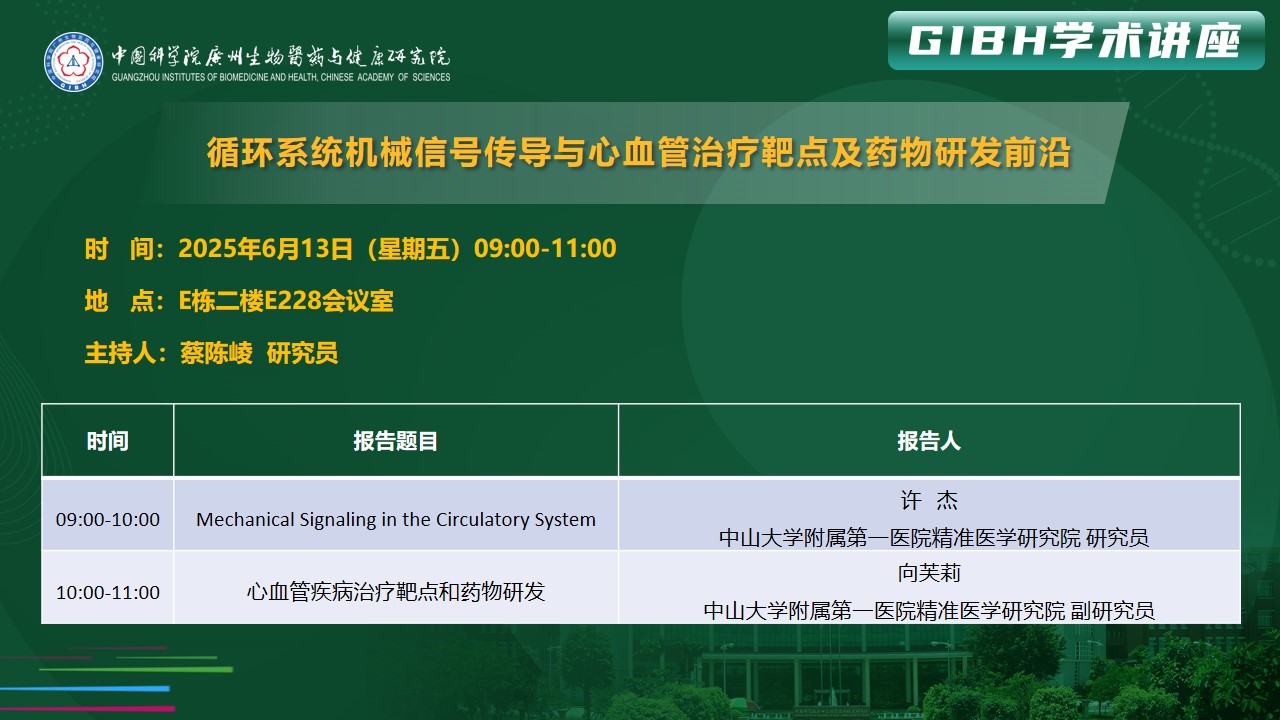 2025年6月13日學(xué)術(shù)講座:循環(huán)系統(tǒng)機(jī)械信號(hào)傳導(dǎo)與心血管治療靶點(diǎn)及藥物研發(fā)前沿