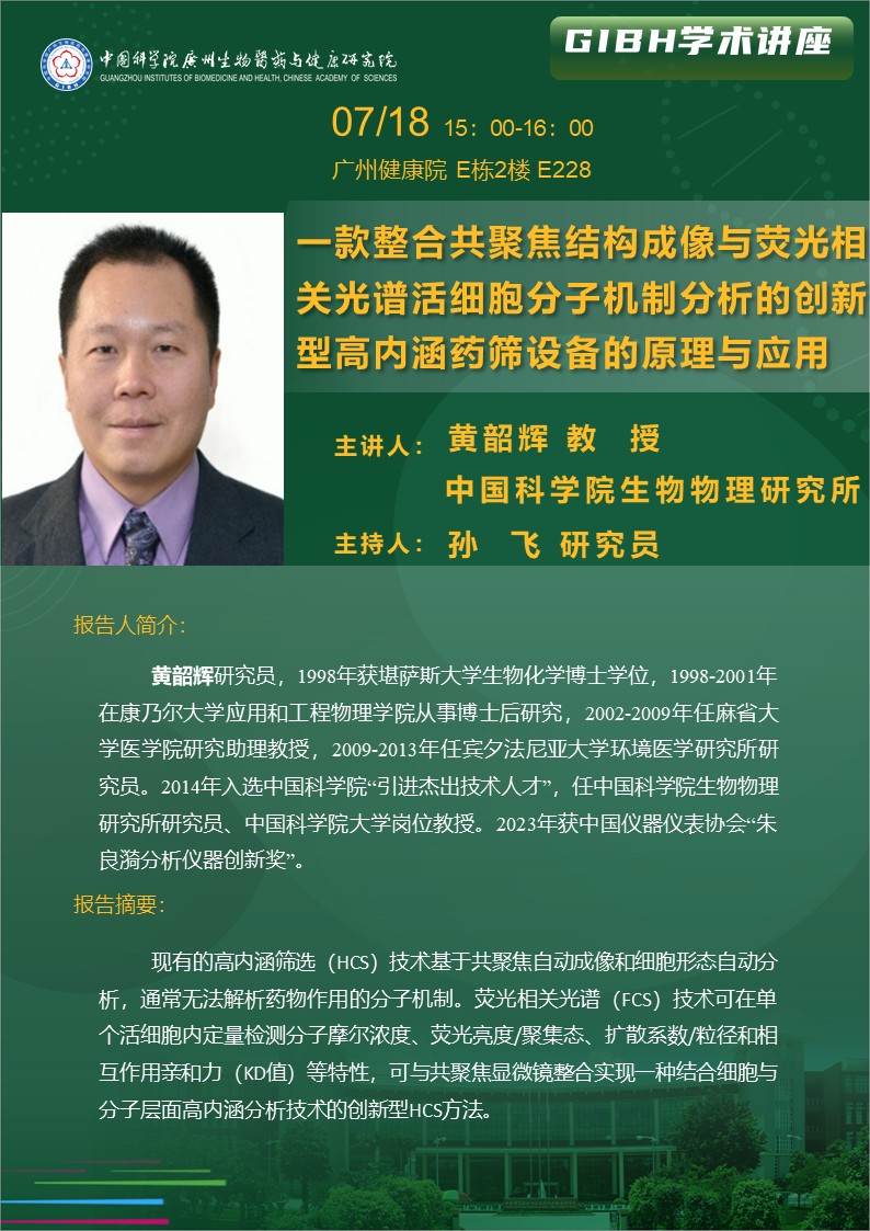 2025年7月18日學(xué)術(shù)講座:一款整合共聚焦結(jié)構(gòu)成像與熒光相關(guān)光譜活細(xì)胞分子機(jī)制分析的創(chuàng)新型高內(nèi)涵藥篩設(shè)備的原理與應(yīng)用