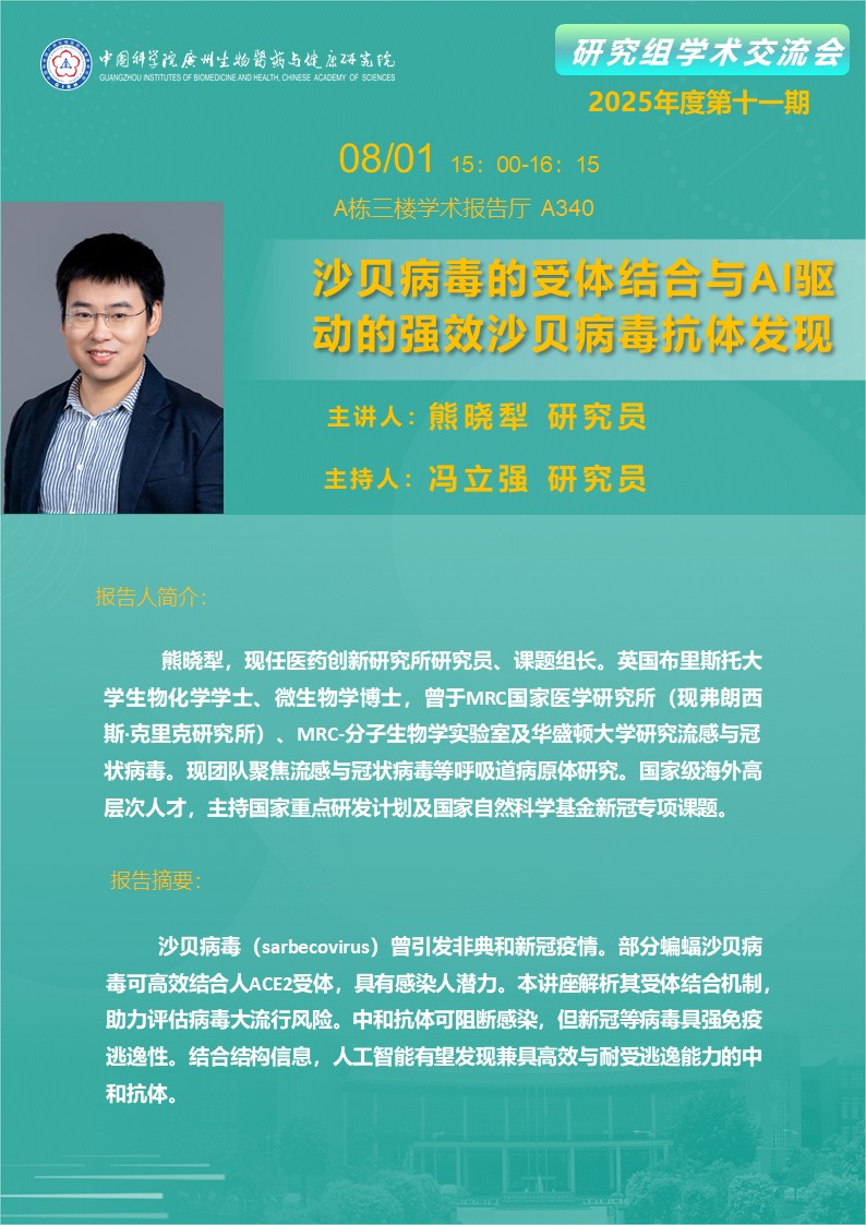 2025年8月1日研究組學術(shù)交流會(2025年度第十一期): 沙貝病毒的受體結(jié)合與AI驅(qū)動的強效沙貝病毒抗體發(fā)現(xiàn)