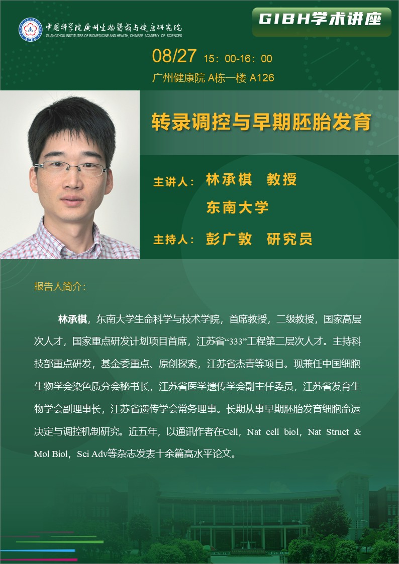 2025年8月27日學術講座: 轉錄調控與早期胚胎發(fā)育