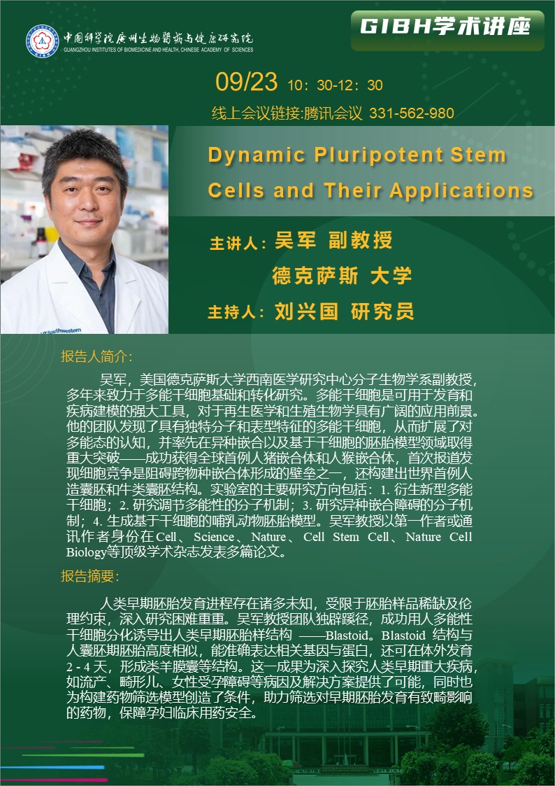 2025年9月23日學術(shù)講座:Dynamic Pluripotent Stem Cells and Their Applications