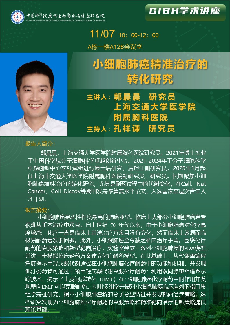 2025年11月7日學(xué)術(shù)講座:小細(xì)胞肺癌精準(zhǔn)治療的轉(zhuǎn)化研究