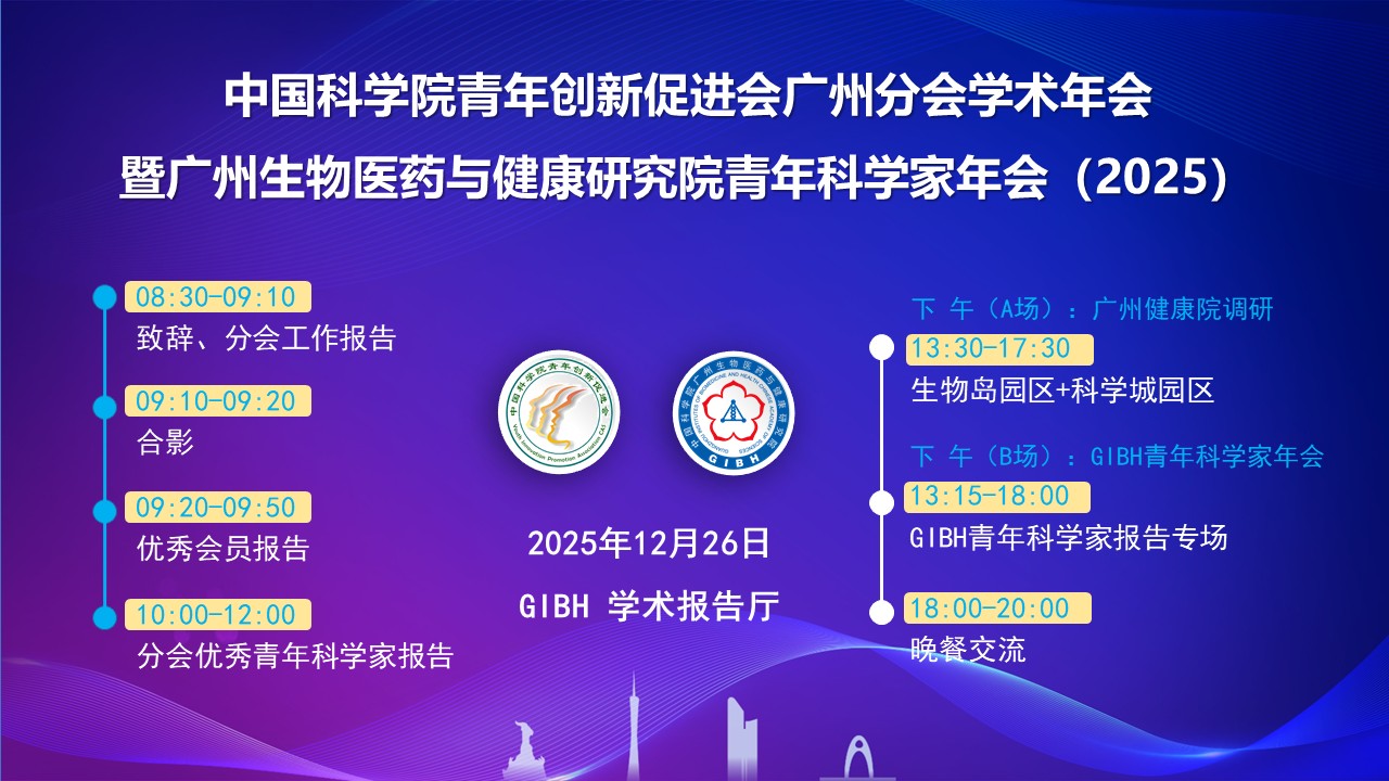 2025年12月26日:中國科學(xué)院青年創(chuàng)新促進(jìn)會(huì)廣州分會(huì)學(xué)術(shù)年會(huì)暨廣州生物醫(yī)藥與健康研究院青年科學(xué)家年會(huì)(2025)