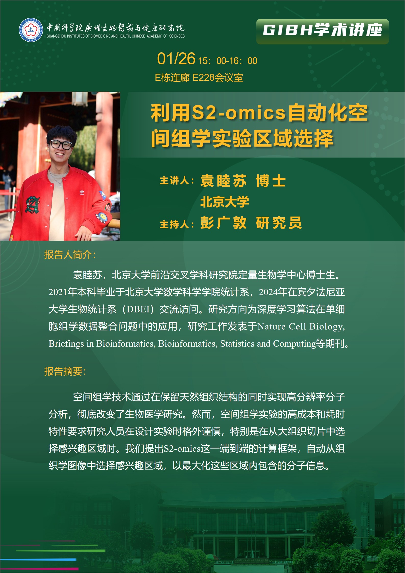2026年1月26日學(xué)術(shù)講座: 利用S2-omics自動化空間組學(xué)實驗區(qū)域選擇