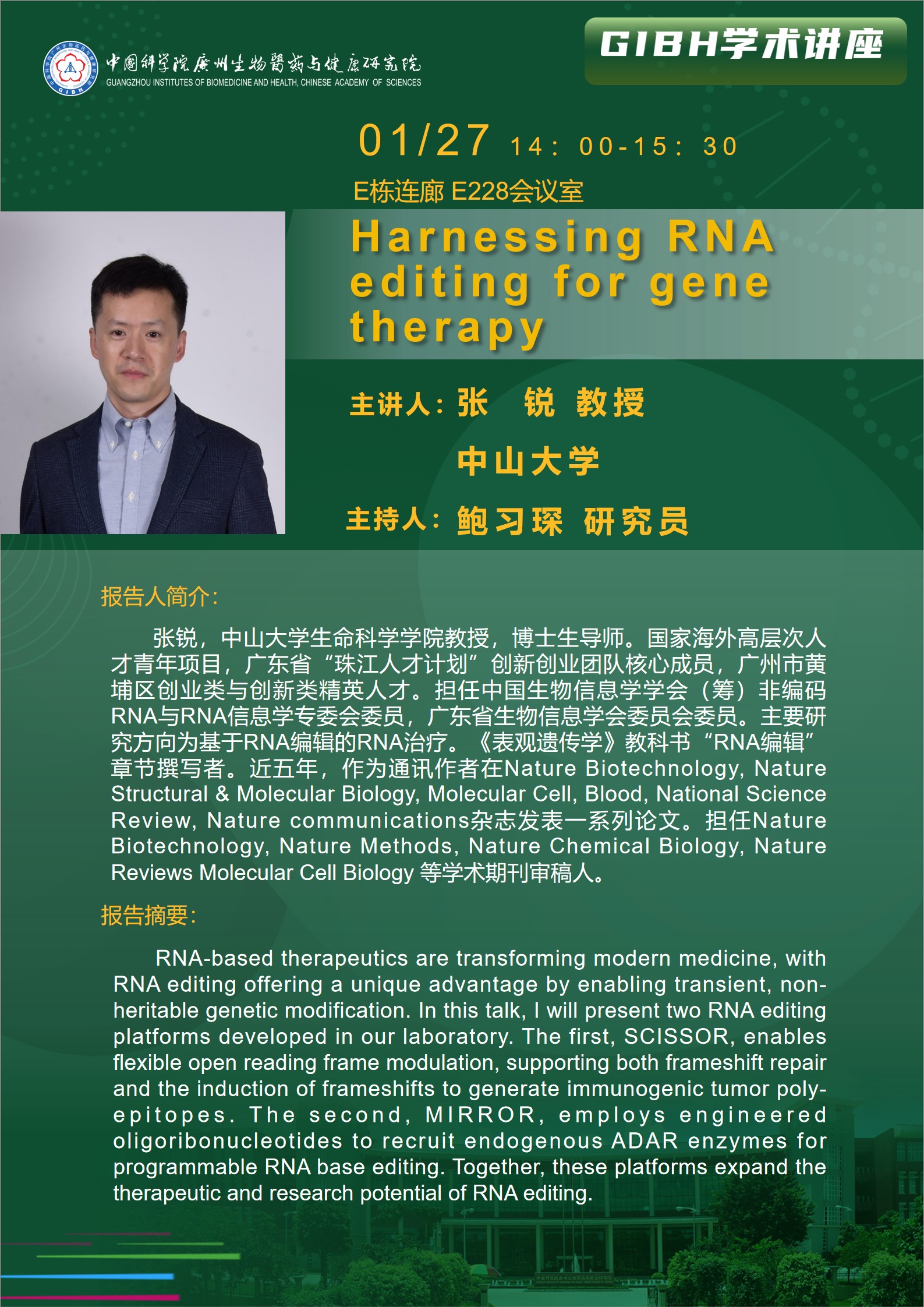 2026年1月27日學(xué)術(shù)講座: Harnessing RNA editing for gene therapy